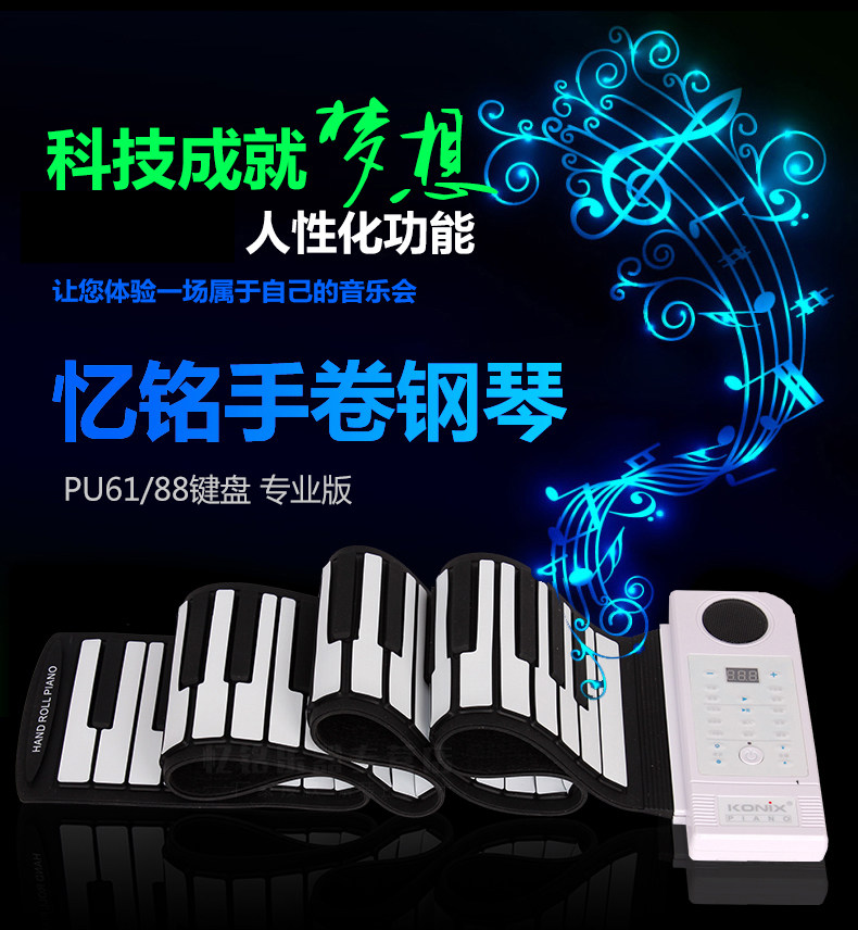 忆铭 Профессиональное портативное пианино, складная клавиатура для начинающих для школьников, 88 клавиш, увеличенная толщина