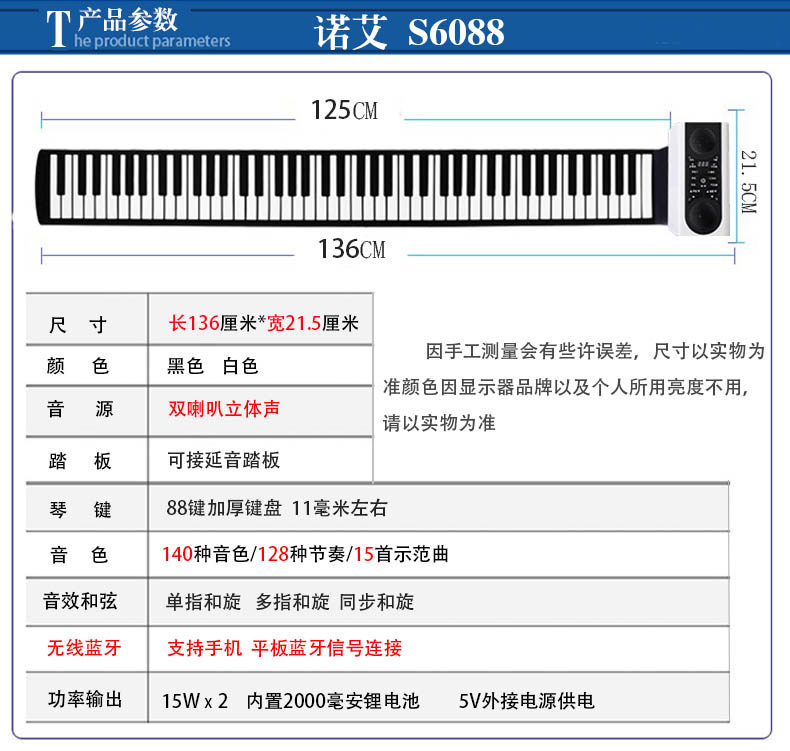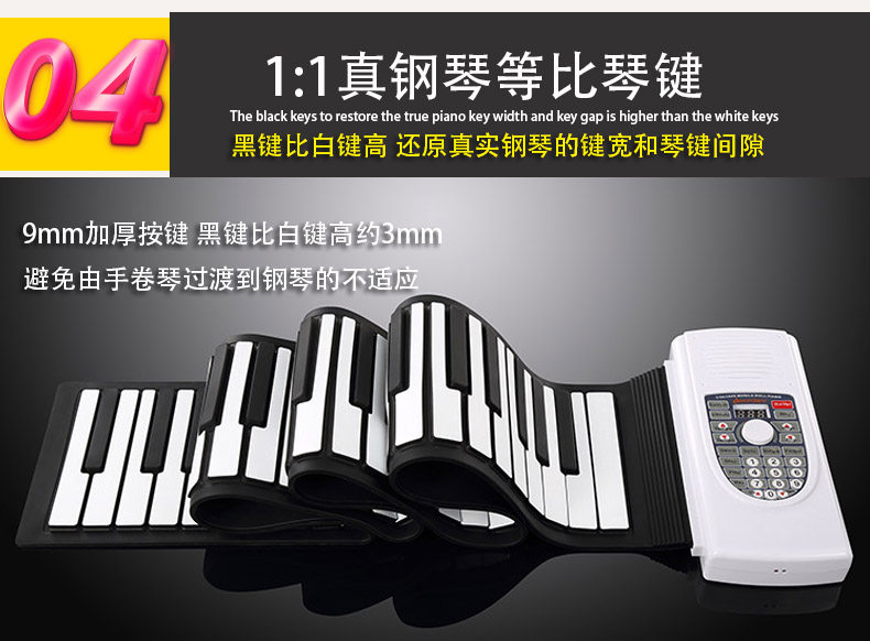 Электронное профессиональное пианино, складная портативная клавиатура для взрослых для начинающих, 88 клавиш, увеличенная толщина