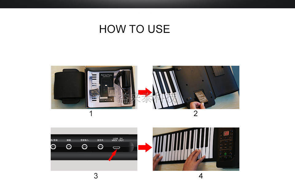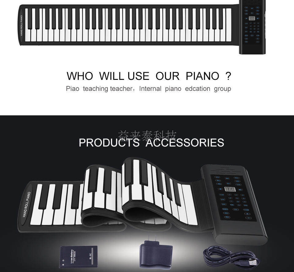 61 Keys Professional Midi Keyboard Roll Up Piano USB -порт