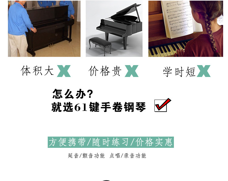 Портативный мегафон, детская клавиатура для школьников, практика, синтезатор, освещение для пианино, 61 клавиш, увеличенная толщина, подходит для начинающих
