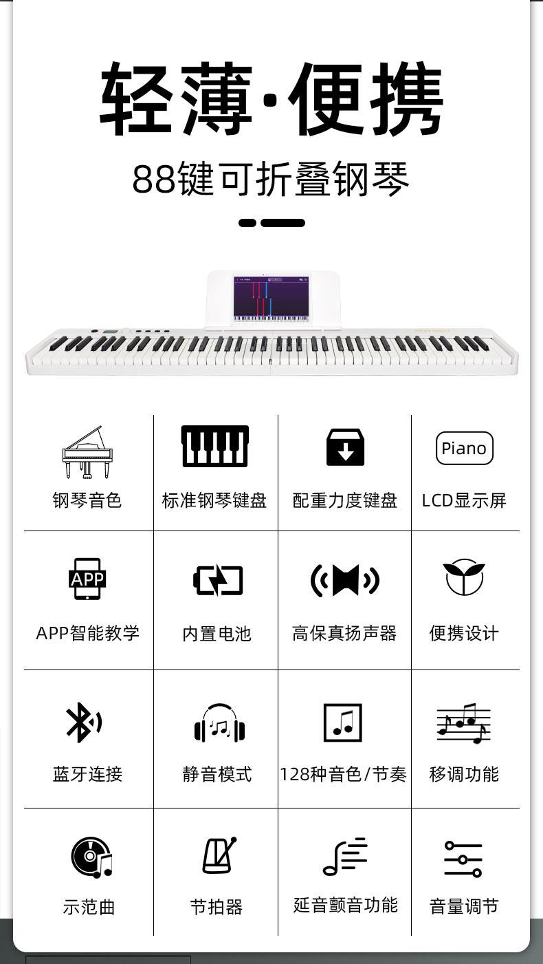 Складное пианино, портативная профессиональная электрическая электронная складная клавиатура для начинающих, 88 клавиш