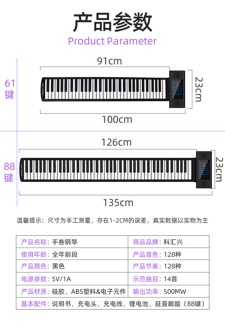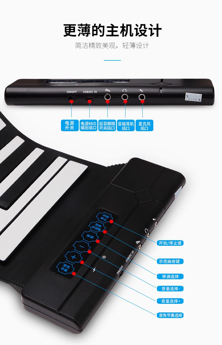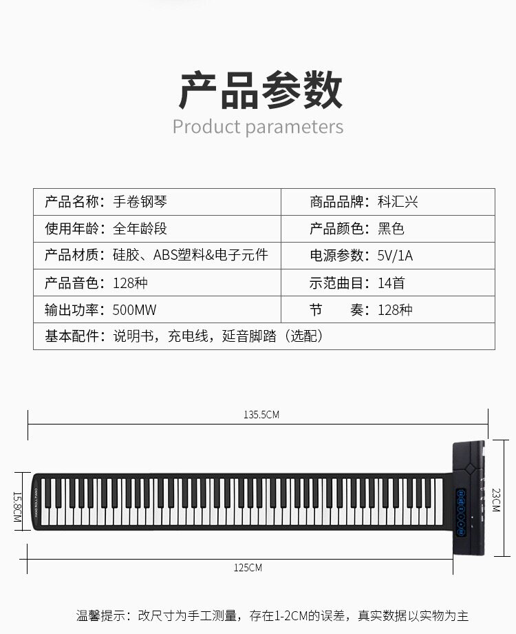 科汇兴 Портативное профессиональное пианино, складной синтезатор для взрослых для начинающих, 88 клавиш, увеличенная толщина