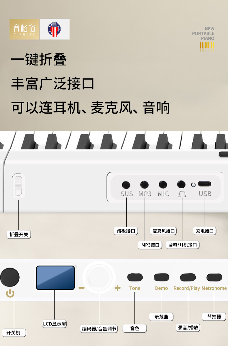 音格格 Электронное пианино, складная портативная профессиональная клавиатура для начинающих, 88 клавиш