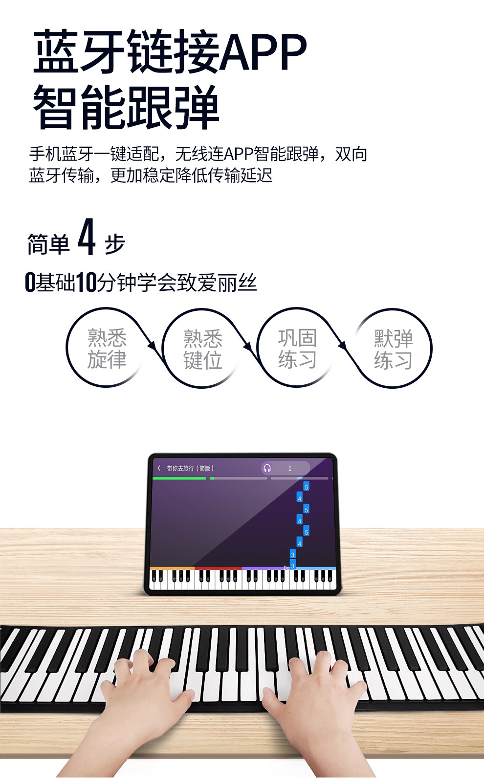 Электронное настольное простое пианино, портативная складная профессиональная клавиатура, практика, 88 клавиш