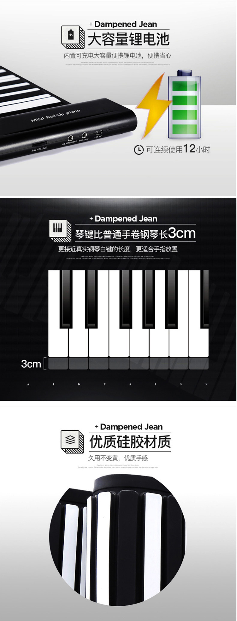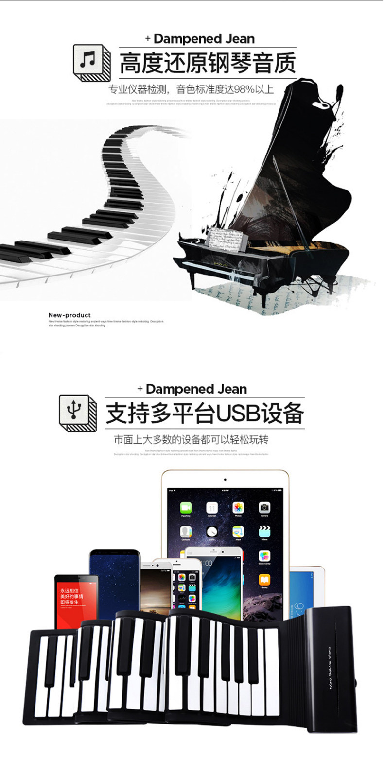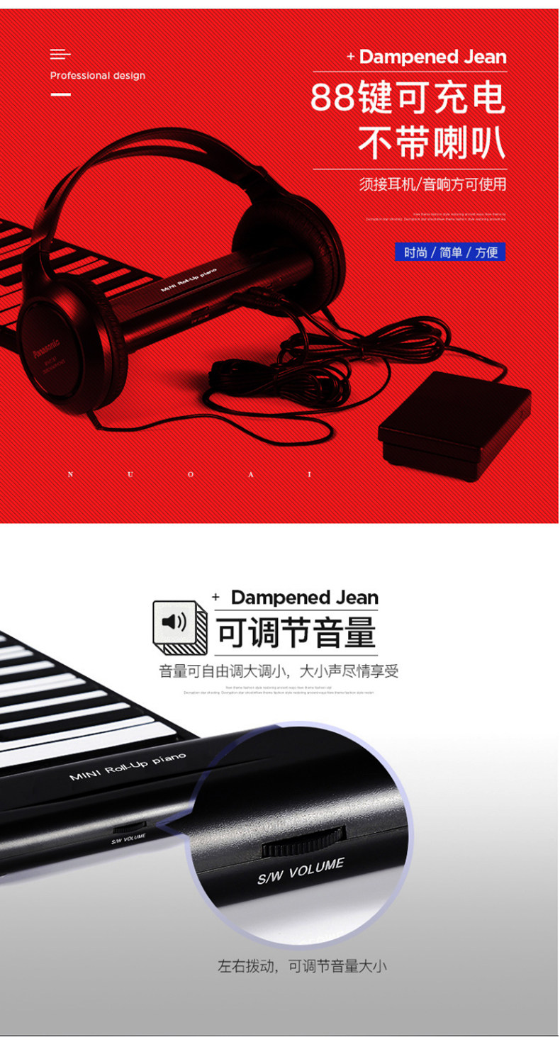 Электронное пианино, профессиональная портативная клавиатура, складная практика для начинающих, 88 клавиш, увеличенная толщина