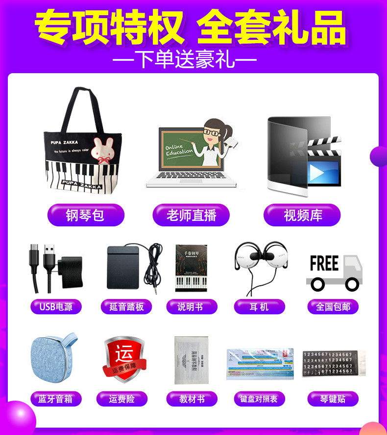 - 88 клавиша+аудио+наклейка на пианино+гарнитура+учебник+оценка фортепиано