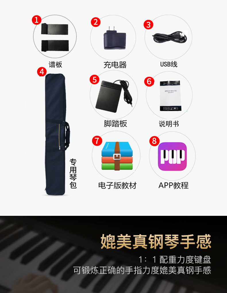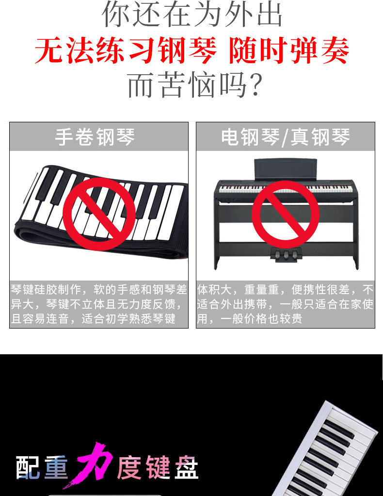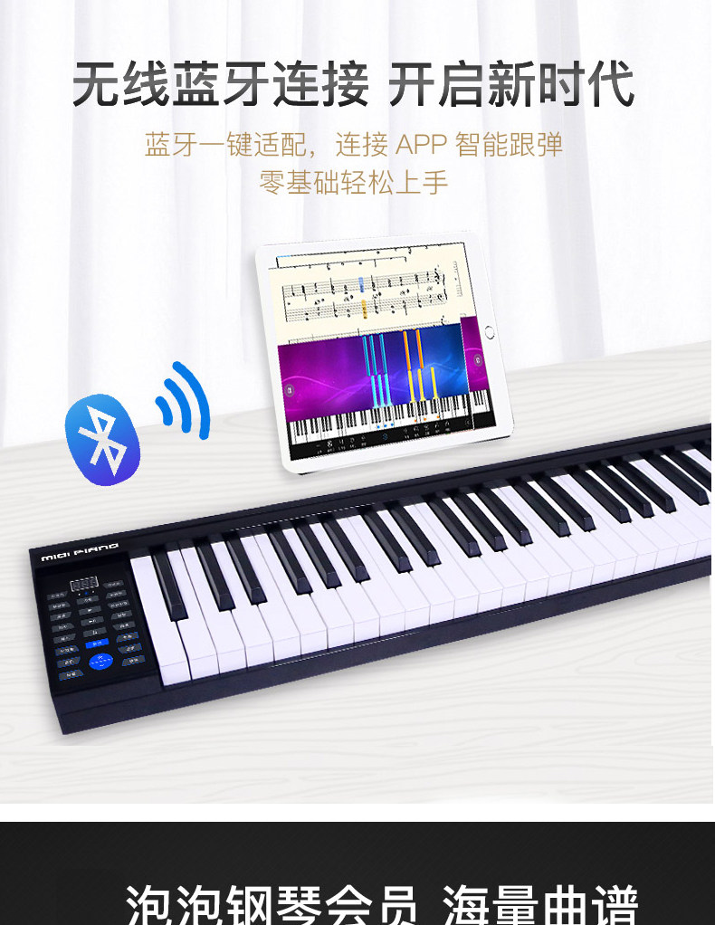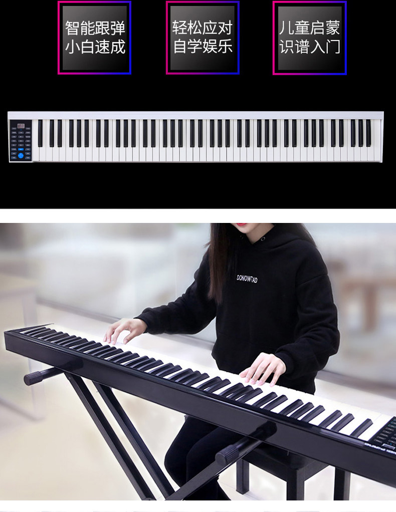Портативное пианино, профессиональная клавиатура, практика для взрослых для начинающих с зарядкой, 88 клавиш, bluetooth