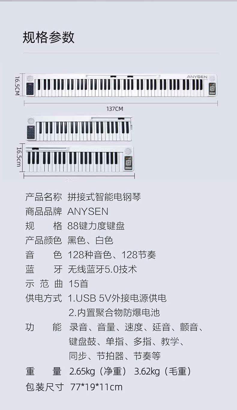 Пианино, портативная складная клавиатура для начинающих для школьников, 88 клавиш, подходит для студента