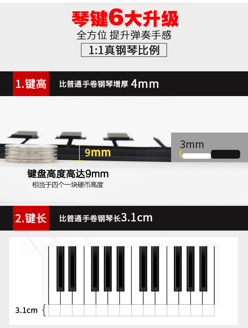 Профессиональное пианино, портативная складная клавиатура, практика для начинающих, 88 клавиш, увеличенная толщина
