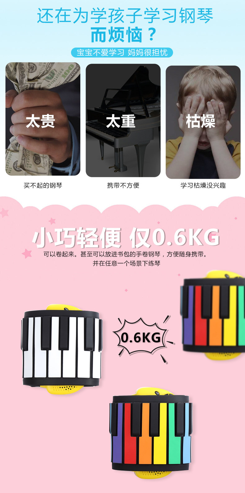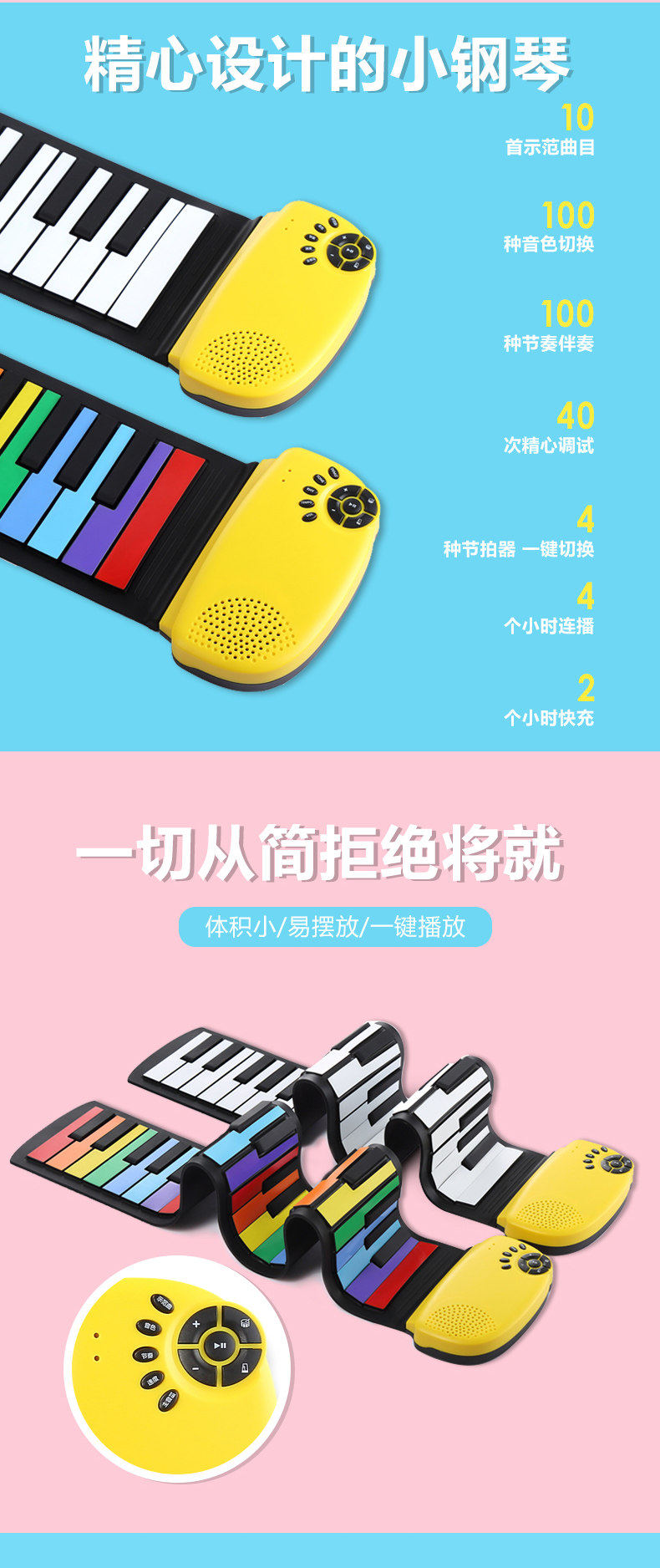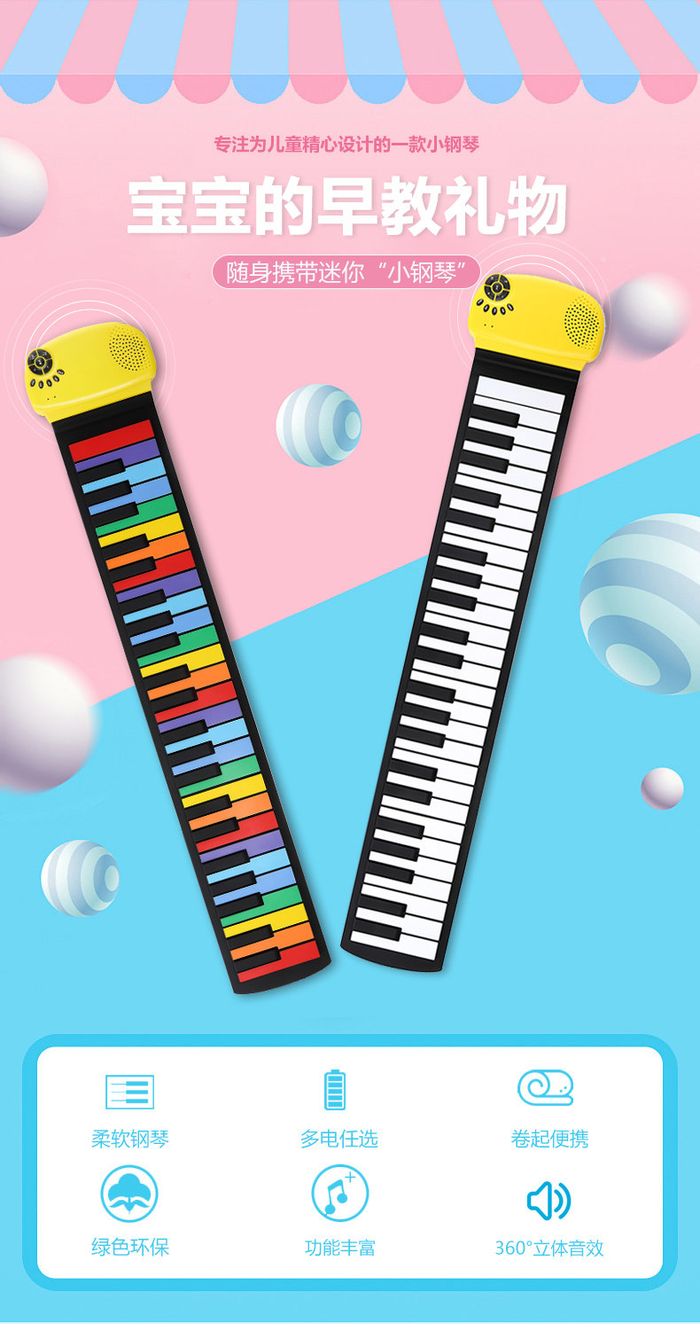 Радужное электронное пианино для начинающих, портативная практика, складная игрушка, музыкальные инструменты, 49 клавиш