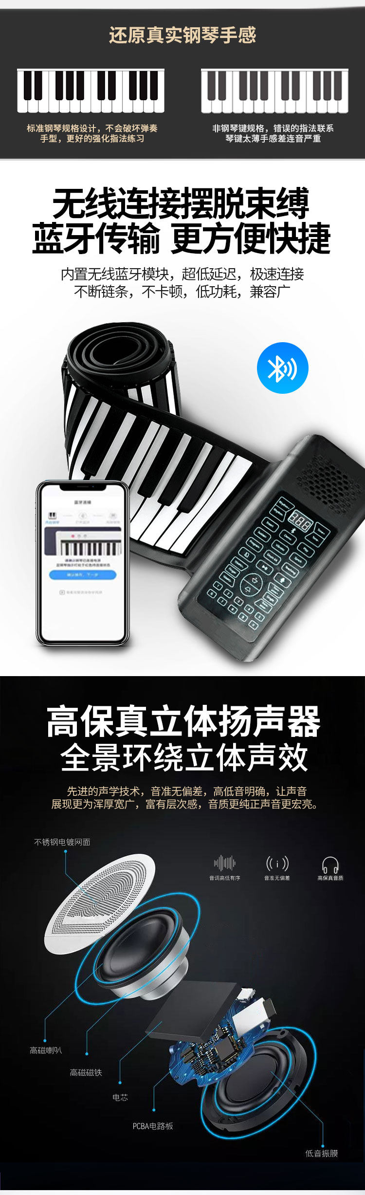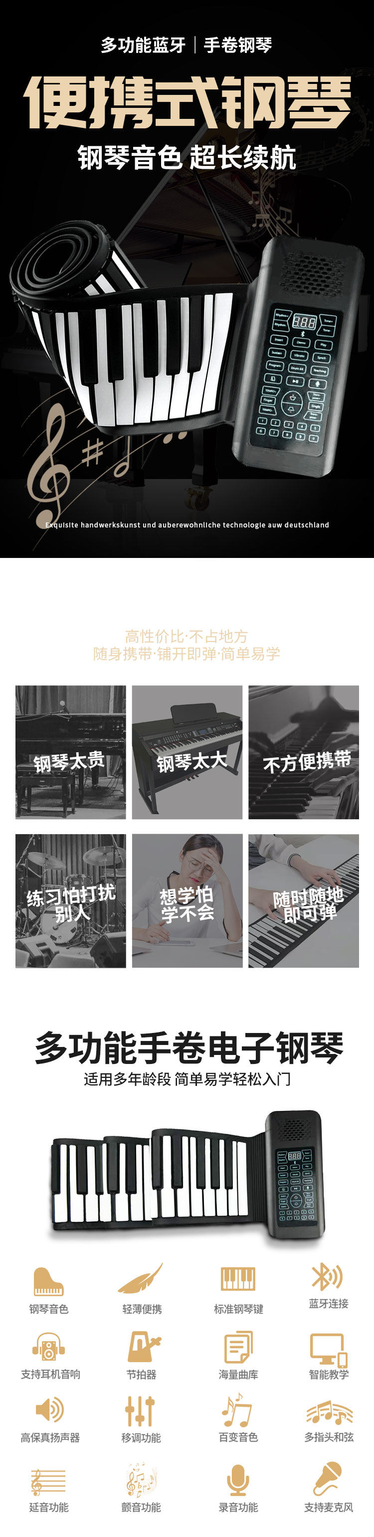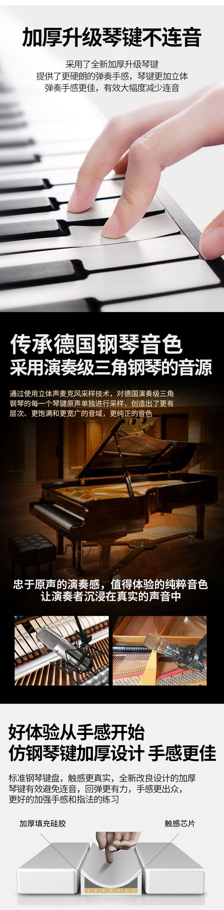 Складное профессиональное портативное электронное пианино для взрослых для начинающих, 88 клавиш, увеличенная толщина, профессиональная версия