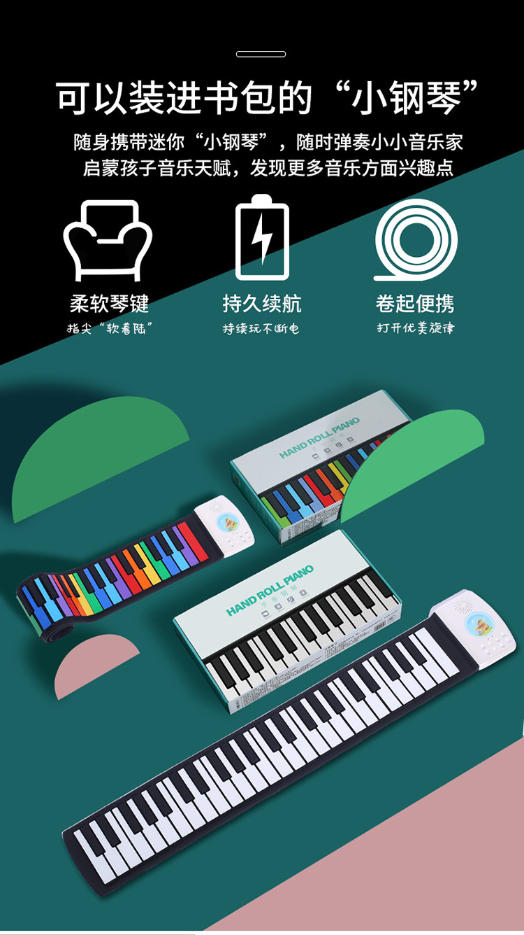 Портативное радужное электронное пианино, складная клавиатура, музыкальные инструменты, 49 клавиш, подходит для начинающих, увеличенная толщина