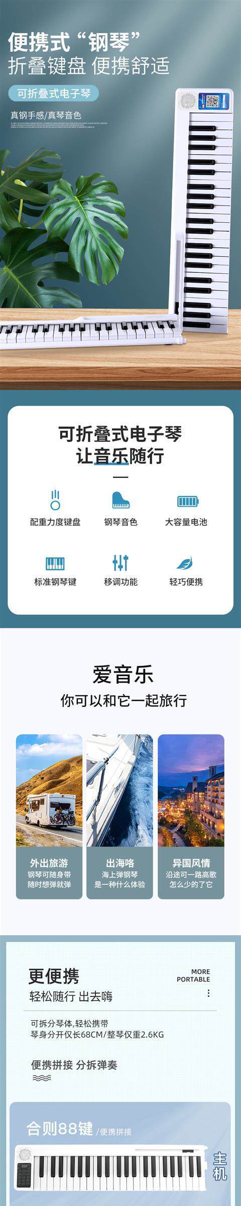 Складное пианино для начинающих, умная портативная электронная клавиатура, 88 клавиш