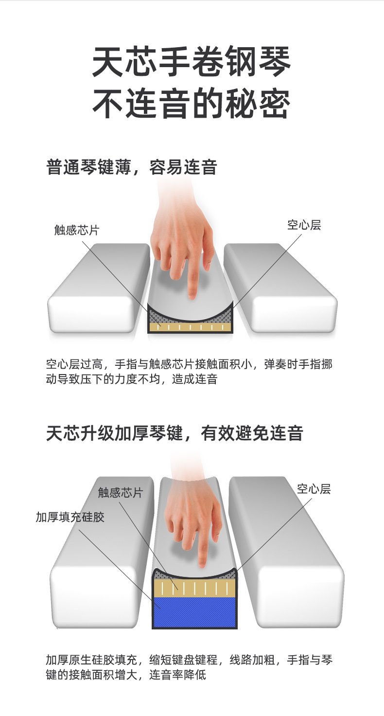 Электронное профессиональное освещение для пианино для начинающих, портативная практика, 88 клавиш, увеличенная толщина