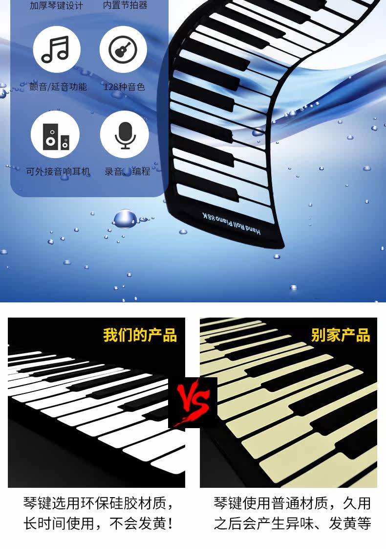 Профессиональное пианино, портативная складная электронная клавиатура для начинающих, 88 клавиш, 61 клавиш