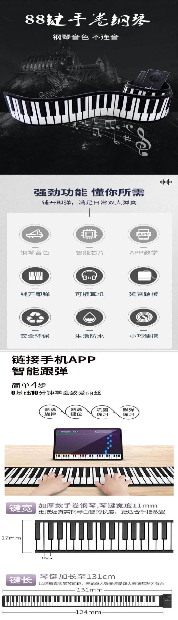 Наушники, пианино, портативный электронный ланч-бокс, 88 клавиш