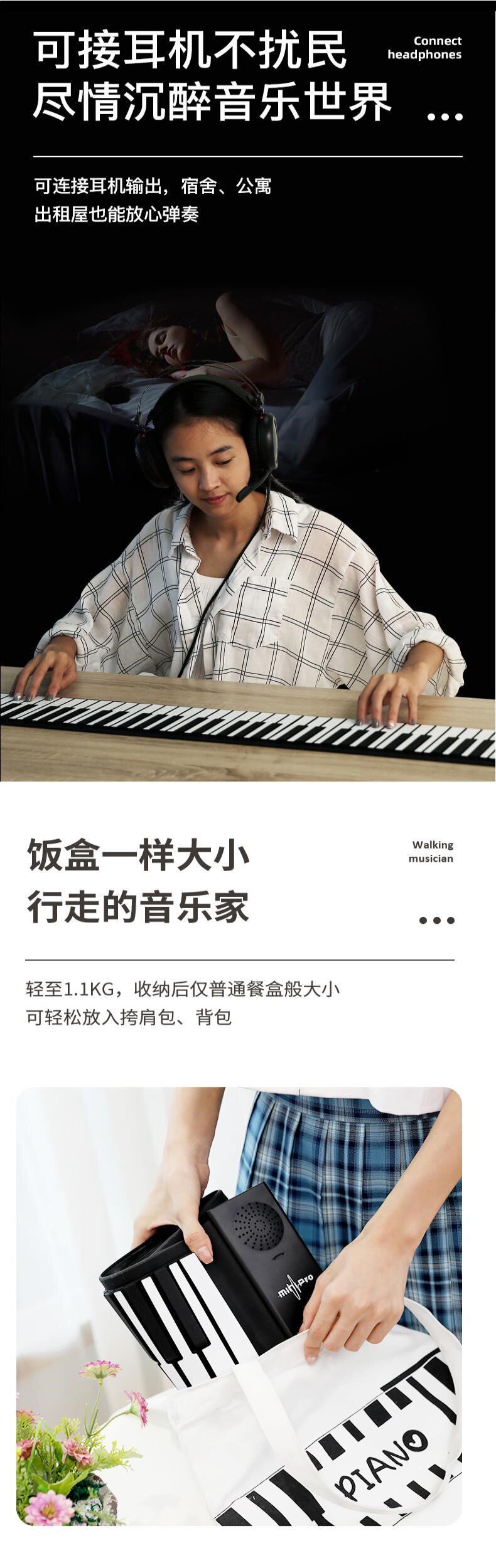 Электронное пианино, складная портативная клавиатура, профессиональная практика для начинающих, 88 клавиш, увеличенная толщина