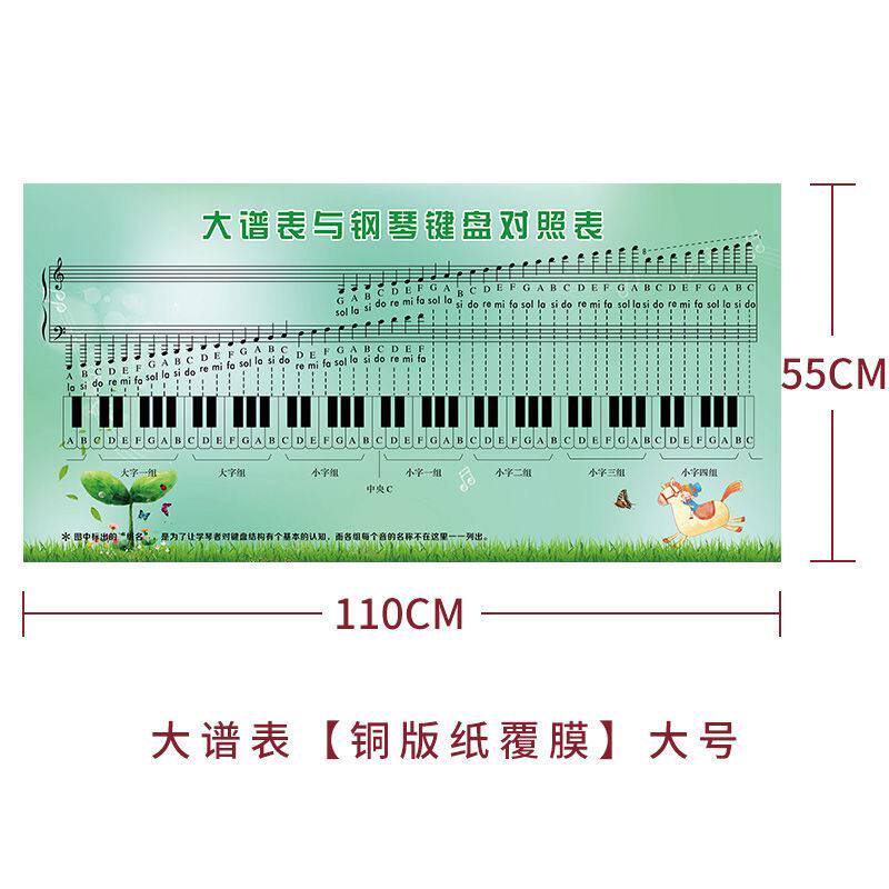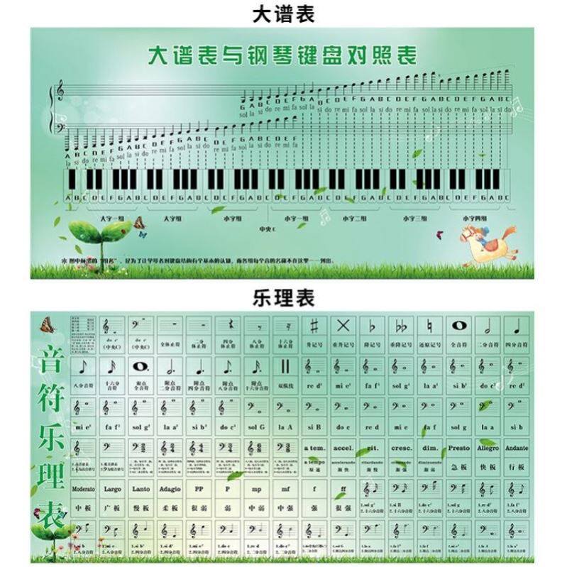 . Пять -линейно -спектр спектра таблицы спектра и таблица управления клавиатурой фортепиано пять -Символ стенки наклейки на стенке.