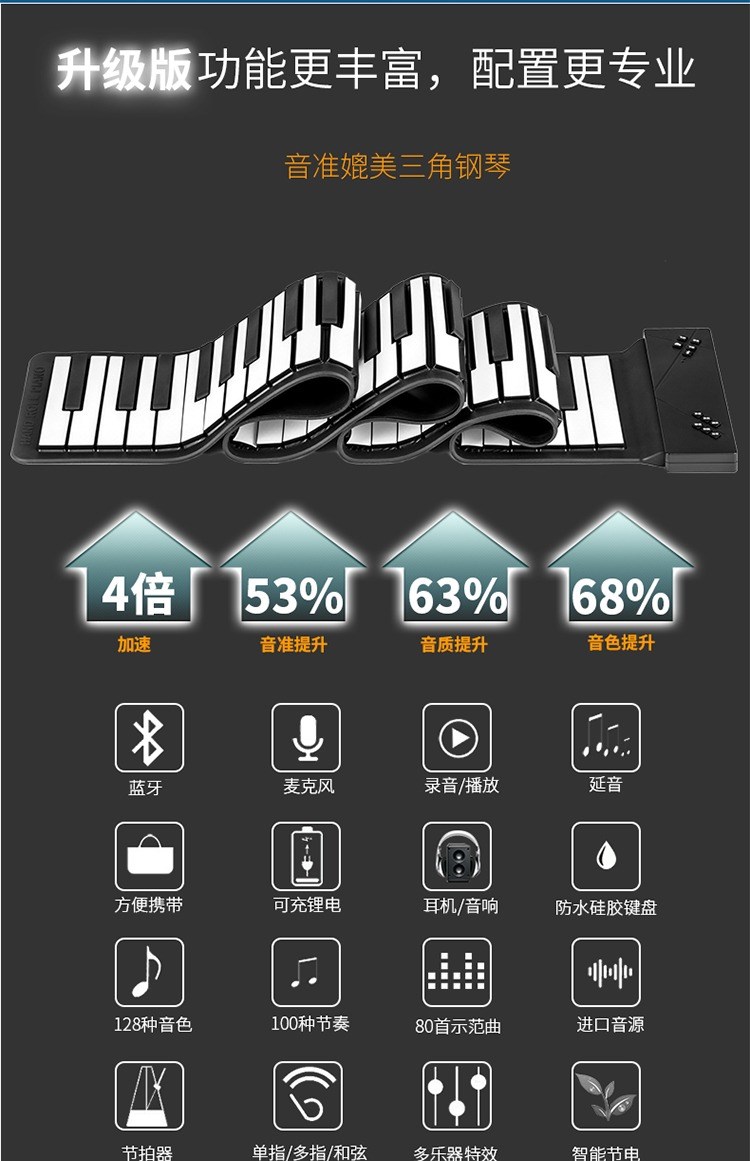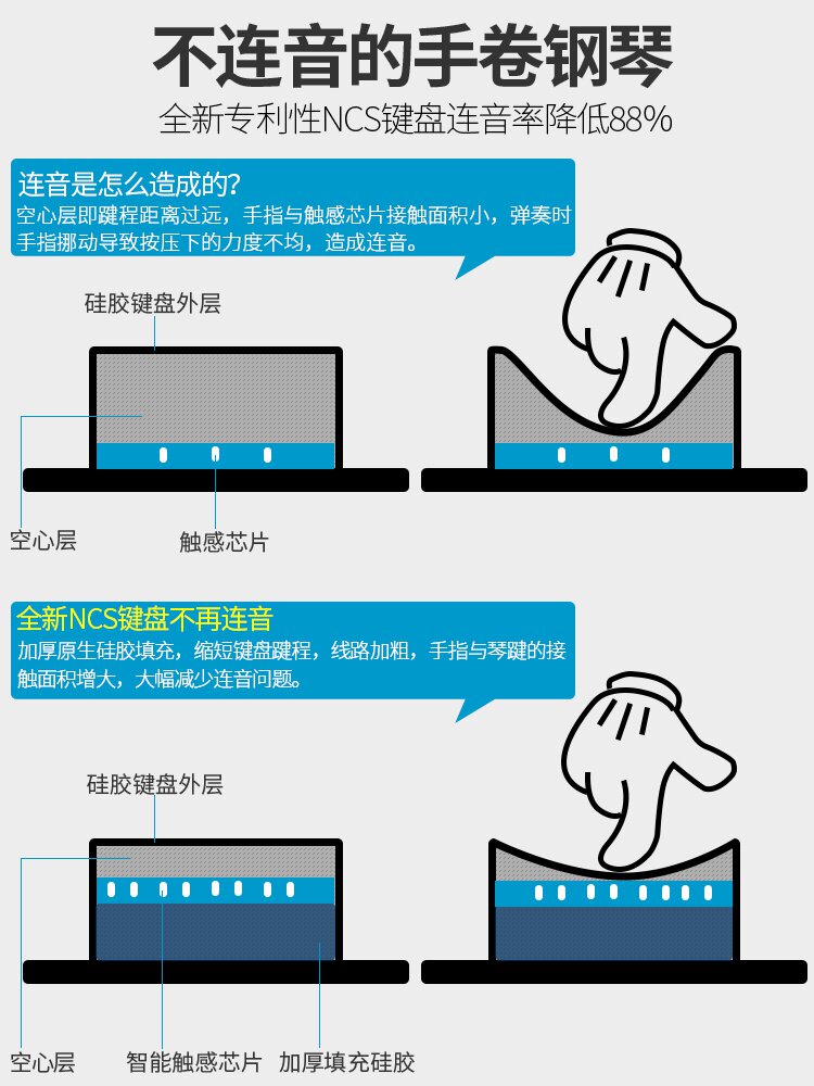 Пианино, профессиональная складная портативная клавиатура, универсальная практика для школьников, 88 клавиш, увеличенная толщина