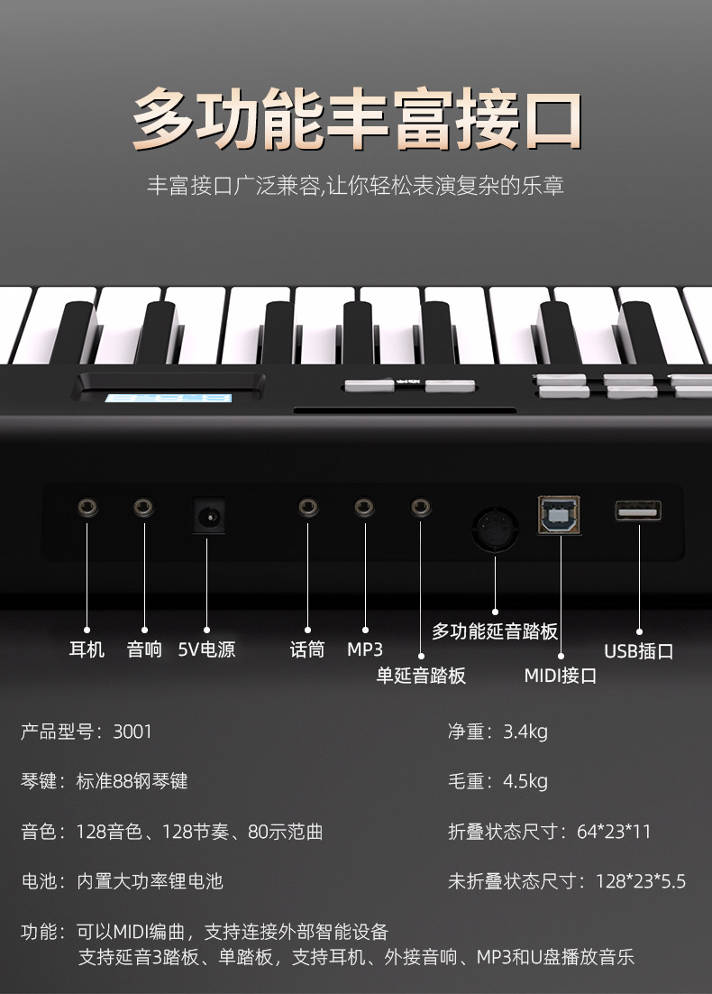 Складное электронное пианино, портативная профессиональная клавиатура для начинающих, 88 клавиш