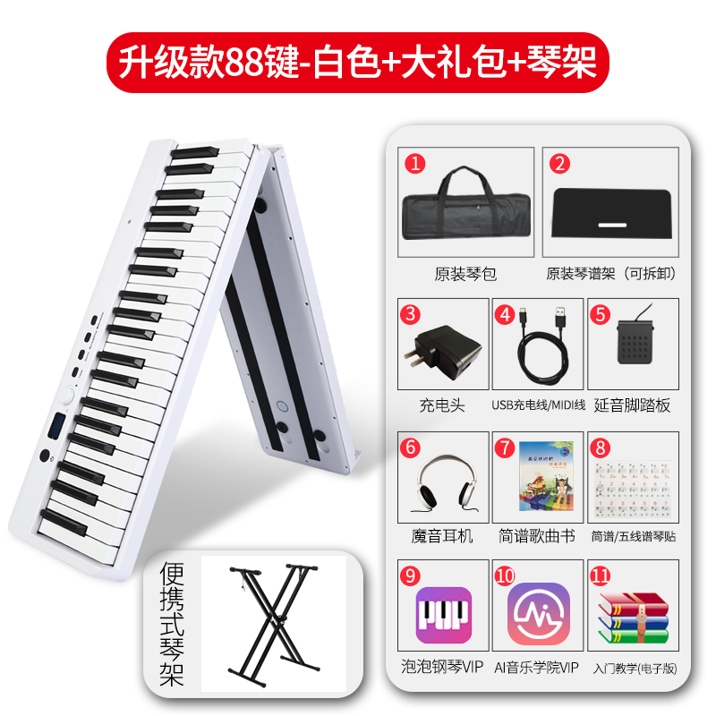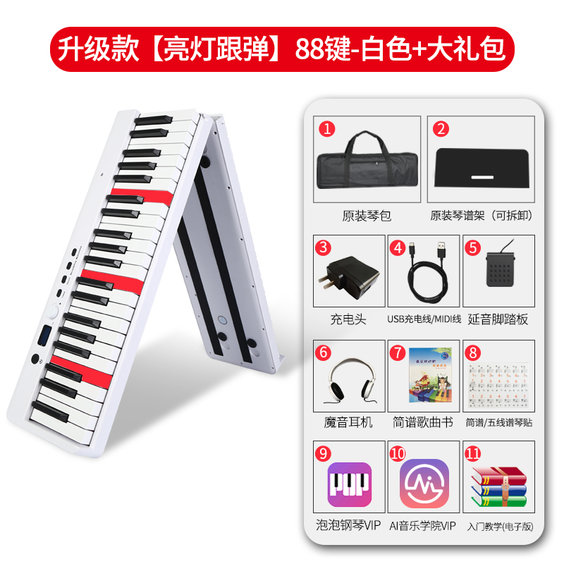 Портативное складное электронное пианино, умная профессиональная клавиатура для начинающих, 88 клавиш