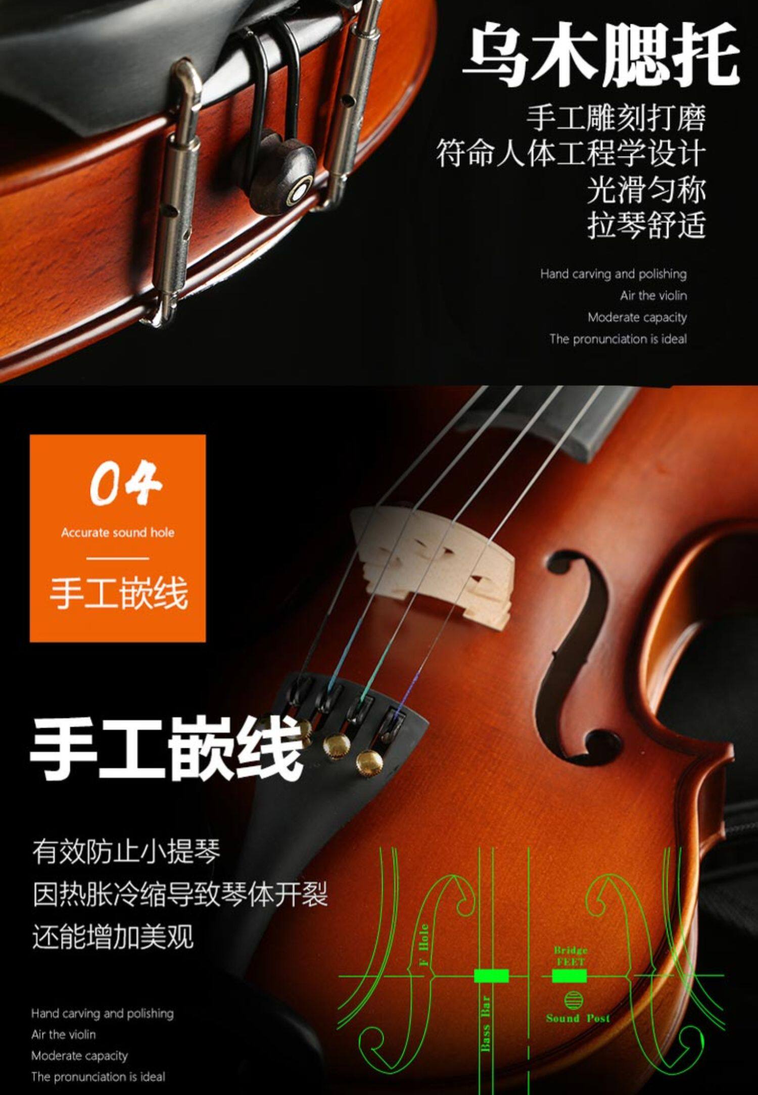 浩成 Импортная профессиональная скрипка из натурального дерева для начинающих, музыкальные инструменты для взрослых, DIY