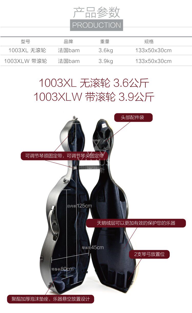 [Физический магазин] Французская серия BAM Clover 1003XL имеет колеса без колеса с ультра -светильницей на виолончели