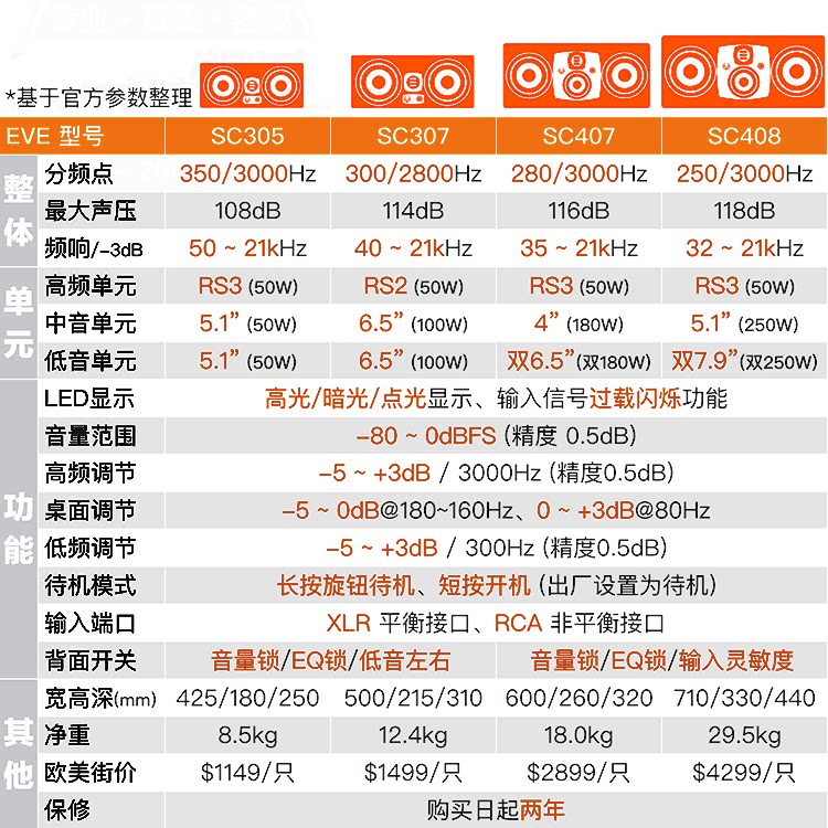 Лицензированный EVE Audio SC407 SC408 TRI -точка частота MTM полузащитник профессиональный профессиональный мониторинг