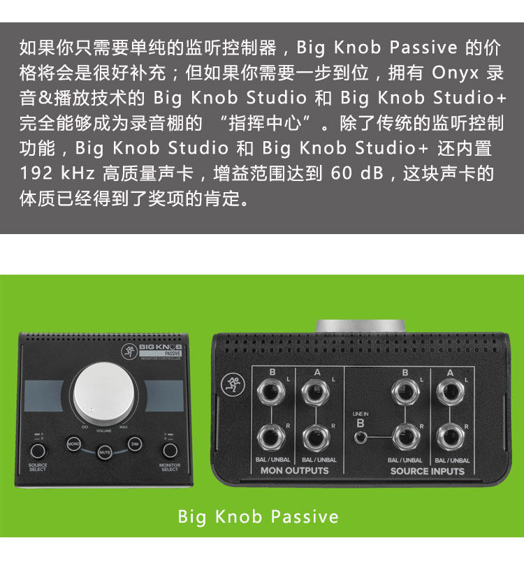 Mackie Bigknob Studio+ Пассивный критический критический диалог Диалог Диалог Говорящий контроллер камера