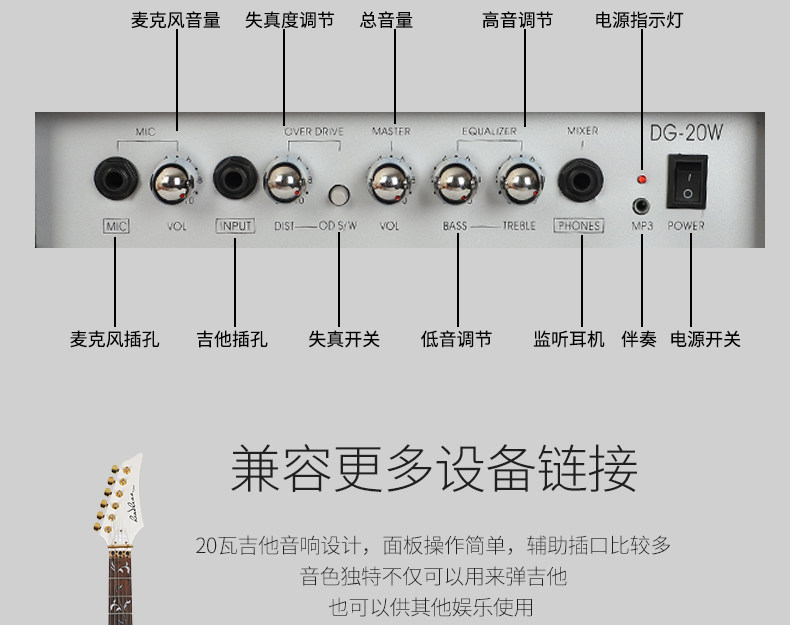 20 Вт электрогитарной аудио -аудио деревянная гитара аудио -бас -звук электрогитара с эффектом искажений