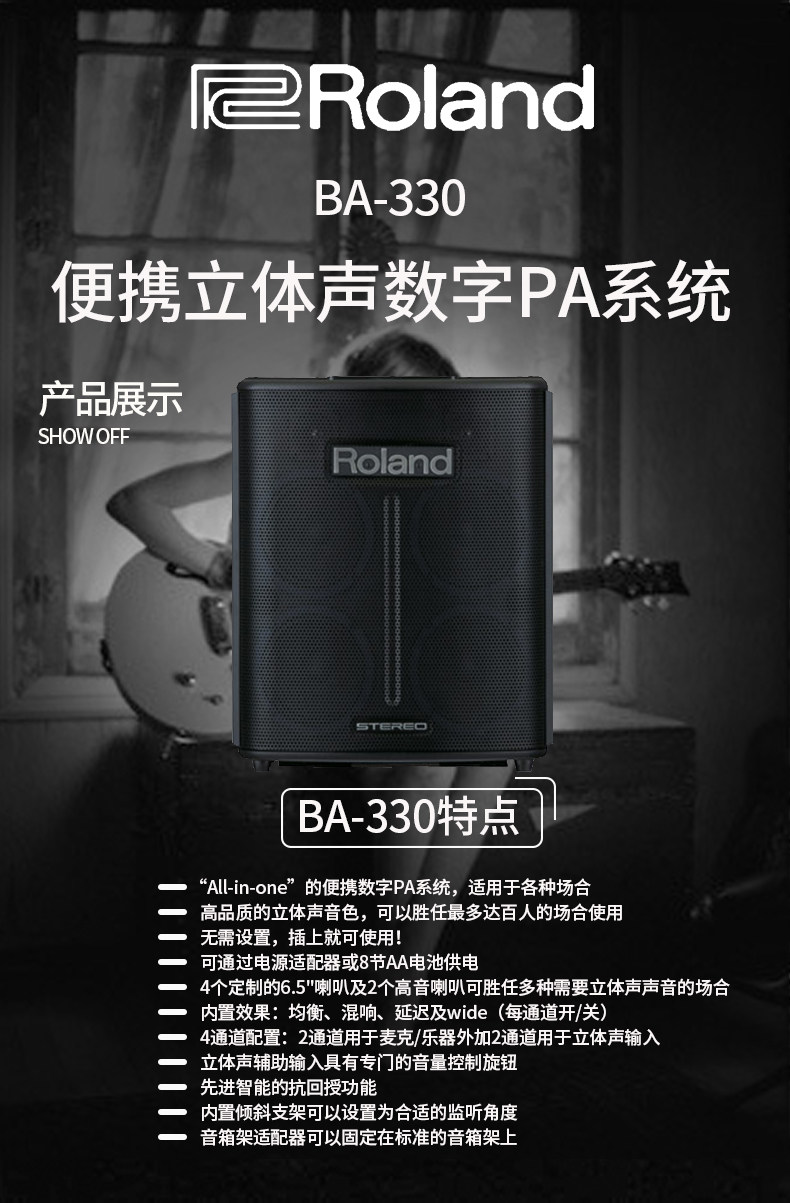 Roland/Roland BA-330 Portable Performing Multifunctional Stage Wood Guitar играет музыку на открытом воздухе звук