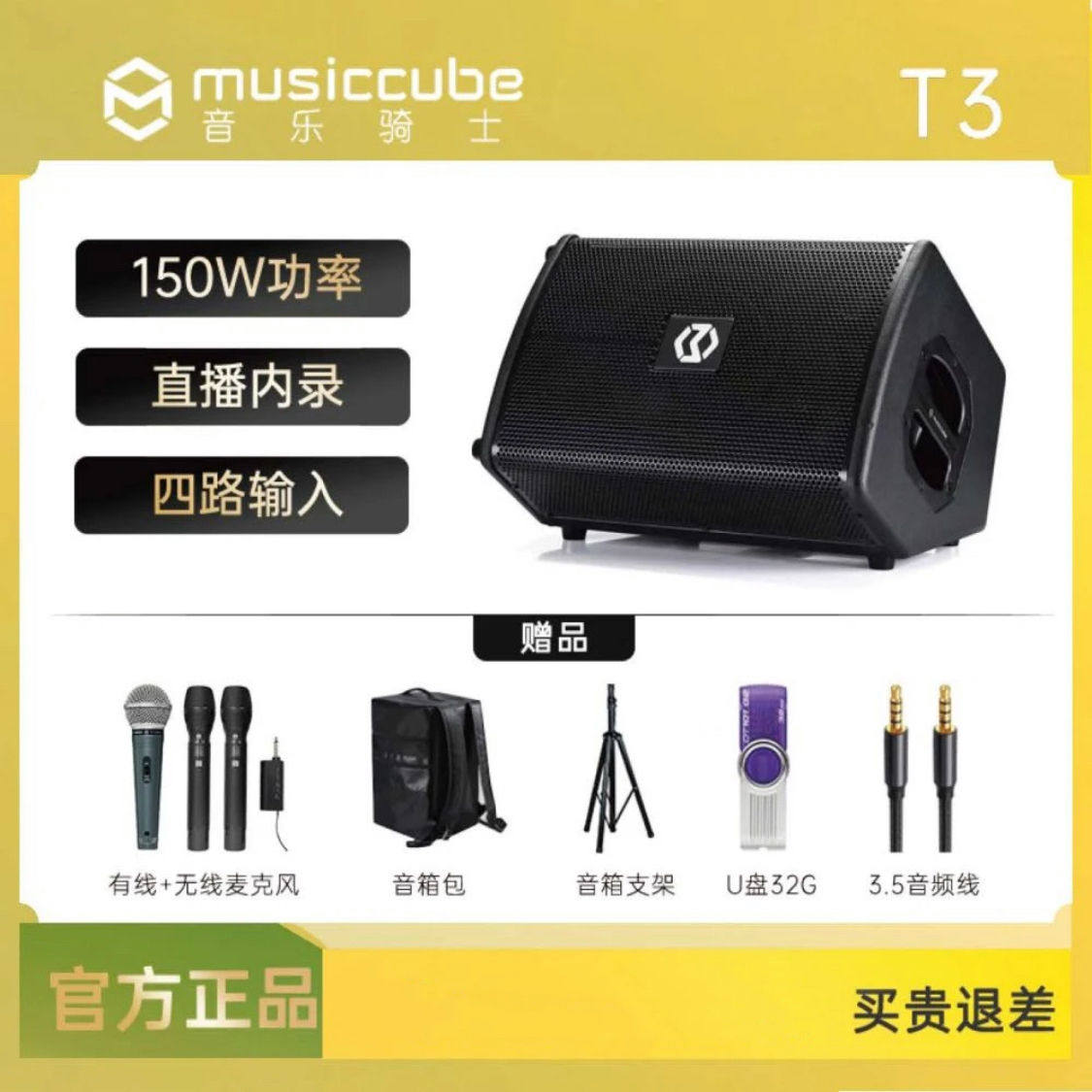 Музыкальный рыцарь T3 Музыкальный инструмент Audio Outdoor K-Song Guitar Saxophone Street, поет портативный Bluetooth Live Audio