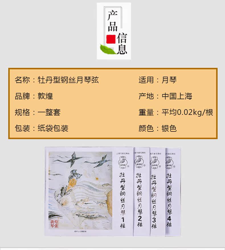 Шанхай Дюнхуанг бренд Стальная проволока Луна фортепианная струна Peony Dunhuang Стальные проволоки аксессуары 1.2.3.4 Набор струнных струнных струн