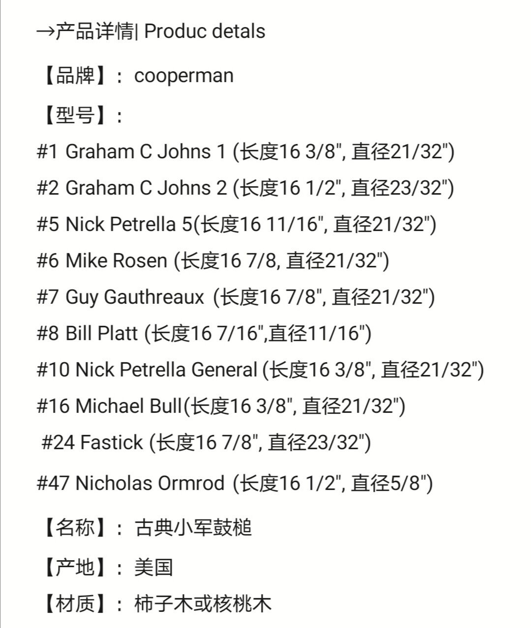 Cooperman 10 5 6 1 Drum Band American Western Pavilion Classical Small Holor Professional Drum Hammer