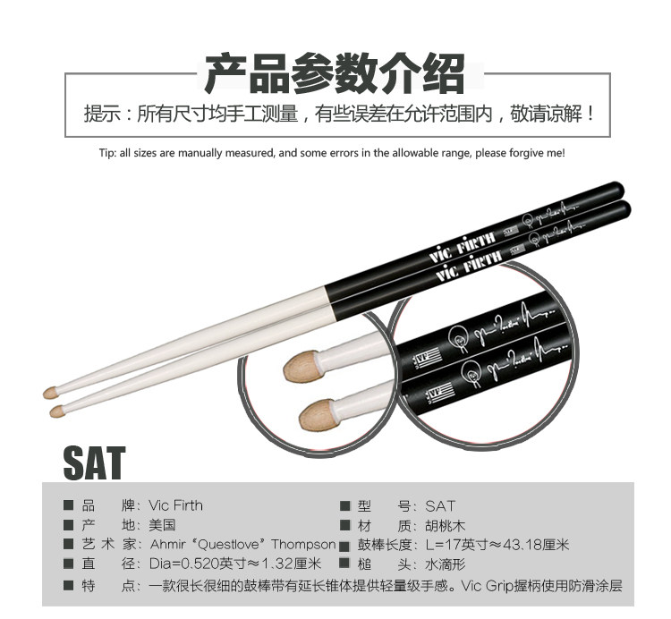 Фирменная барабанная палочка Vic Firth V F SAT SSG SDW SJM SBR SHAR2 STL Бесплатная доставка