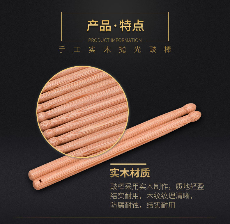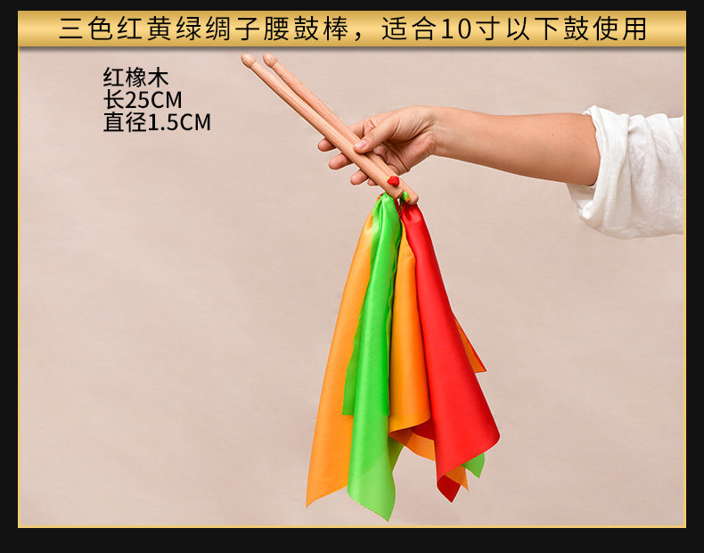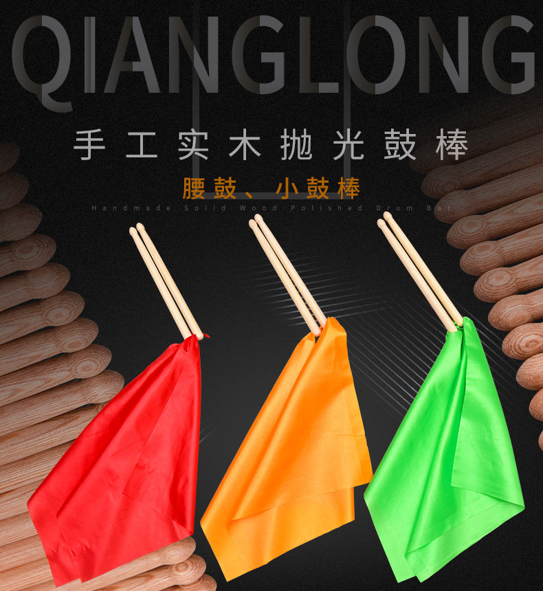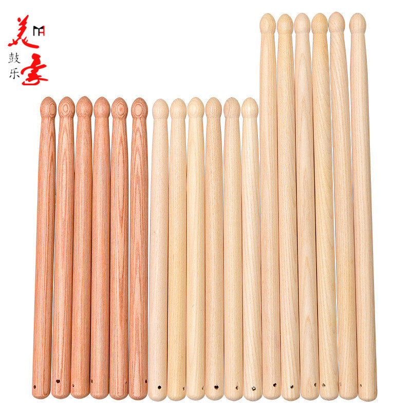 Сплошная древесная барабанная палка детей взрослые барабанные барабанные барабанные стержни для детского сада оборудование трахается на квадратный танец красный шелковый барабанный молоток барабан