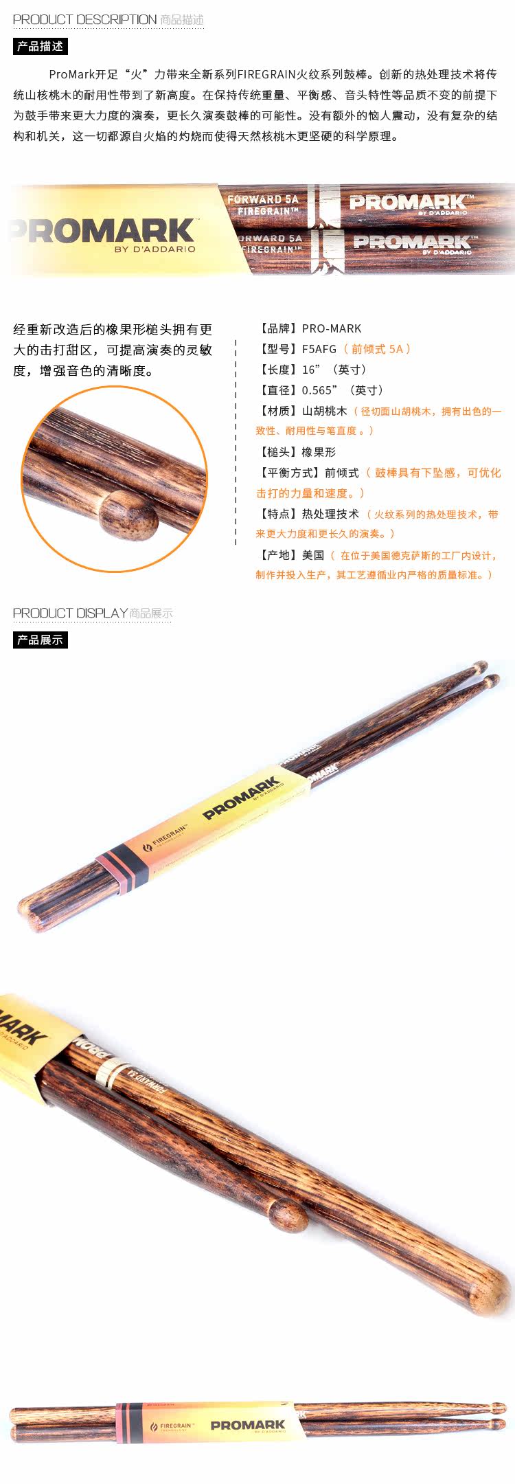 Красота, сделанная Dadrio Promark Forward Flame 5A Drum Band Brum Woodstone Glip Drum Hammer F5AFG