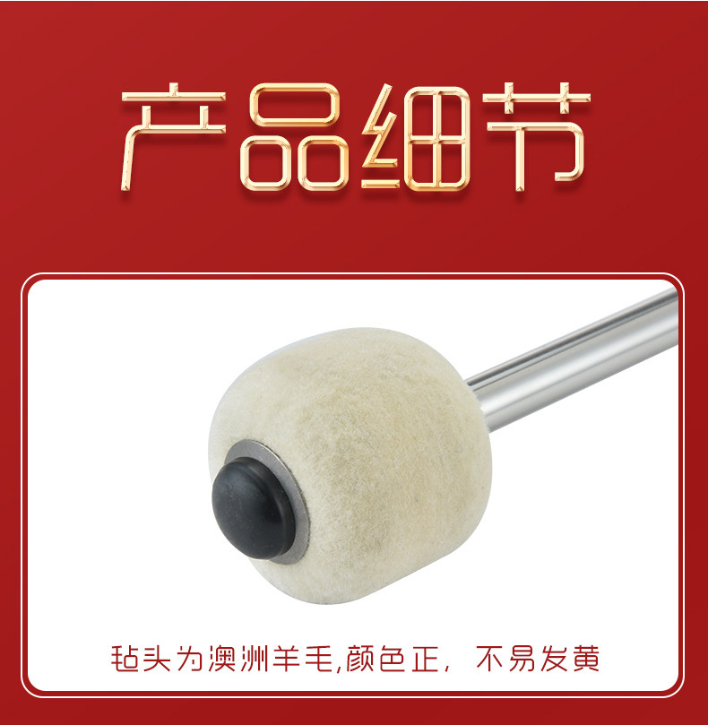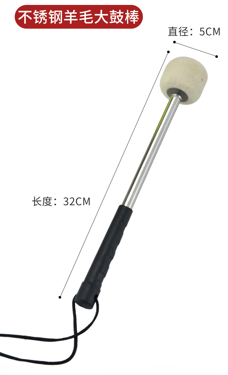 西典 Музыкальный инструмент, большая барабанная палочка, австралийская шерсть, нержавеющая сталь, большой барабанный молоток, бригадная барабанная палка, большая барабанная палочка, большой барабанный молоток, барабанная палка