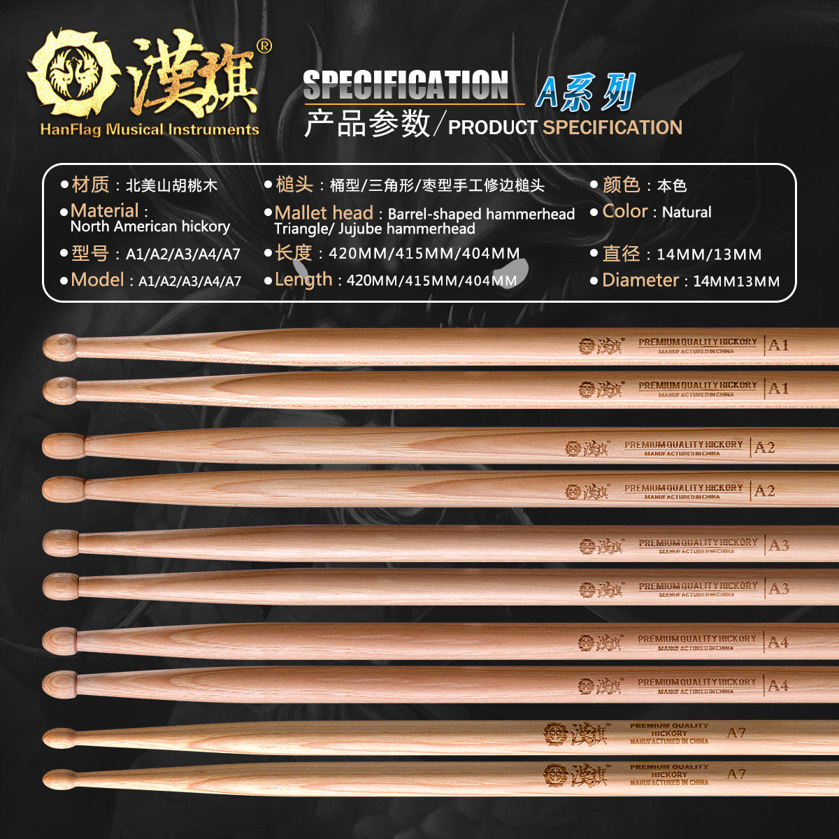 汉旗 Барабан сериал A1 A2 A3 A4 A7 A7 Walnut Worden Rack Rack Drummo Hammer Han Musical Instrument