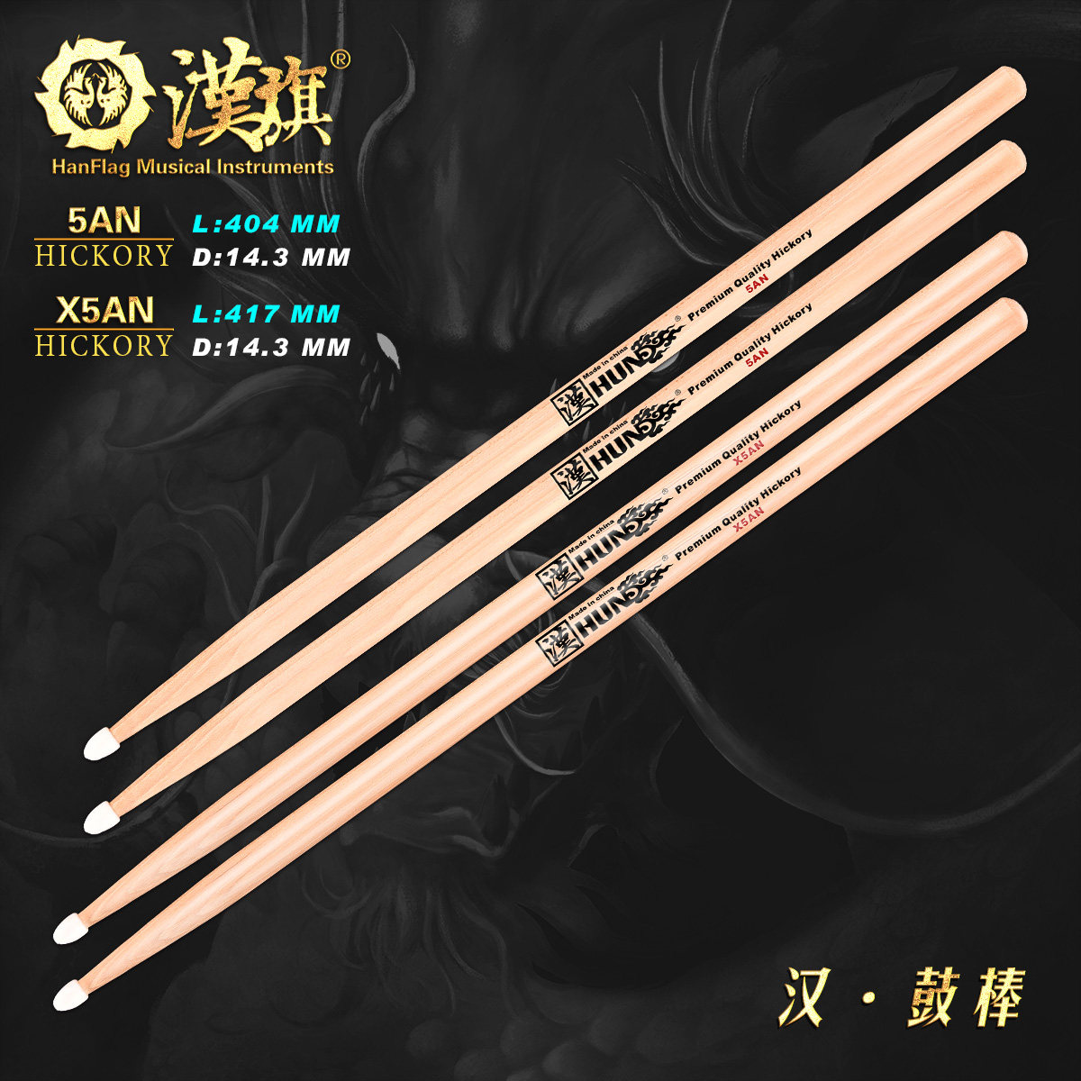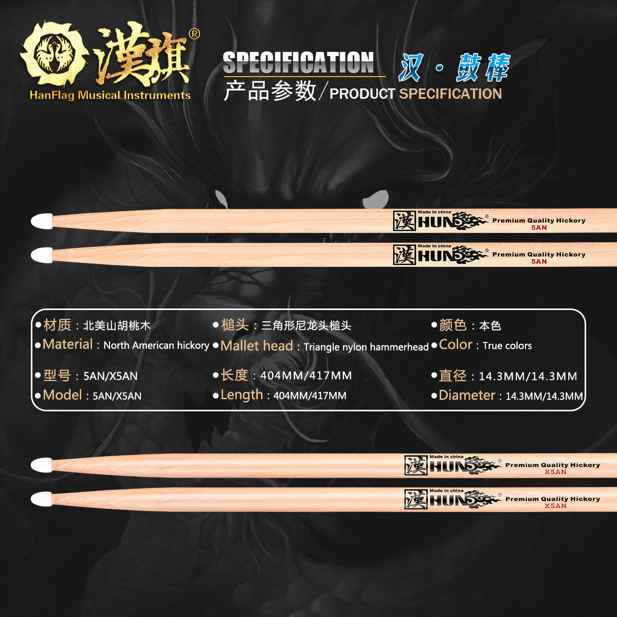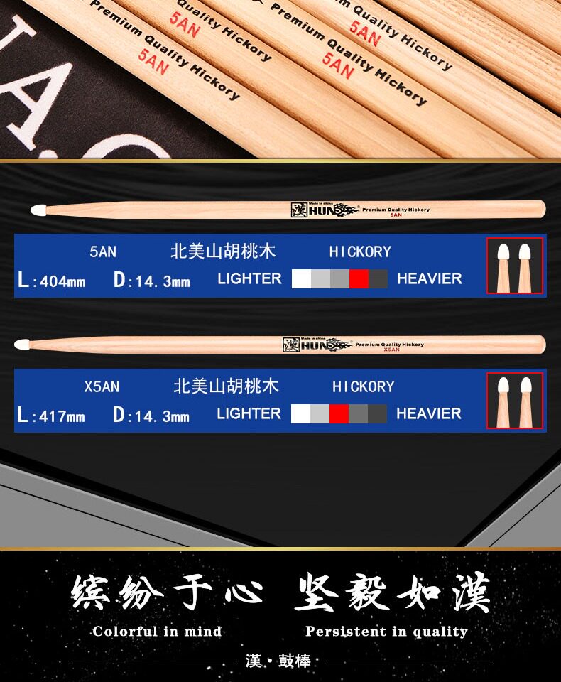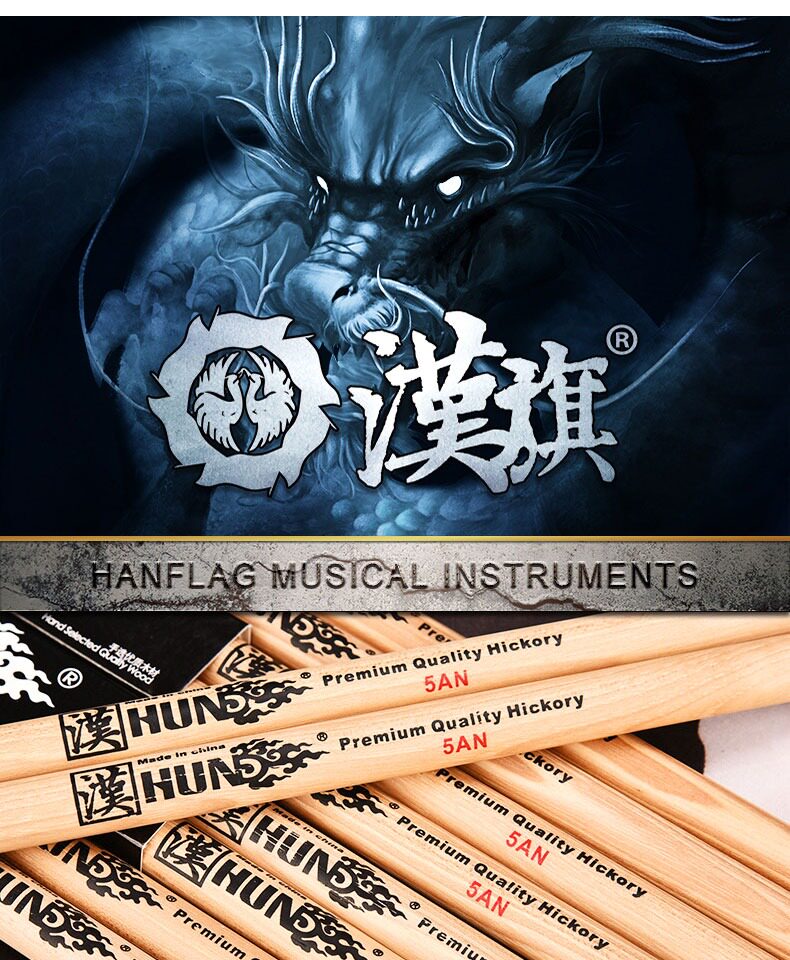 汉旗 Барабанная установка, барабанные палочки, 5AN/X5AN, нейлоновая головка, барабанные палочки из орехового дерева, барабанные молотки марки Han