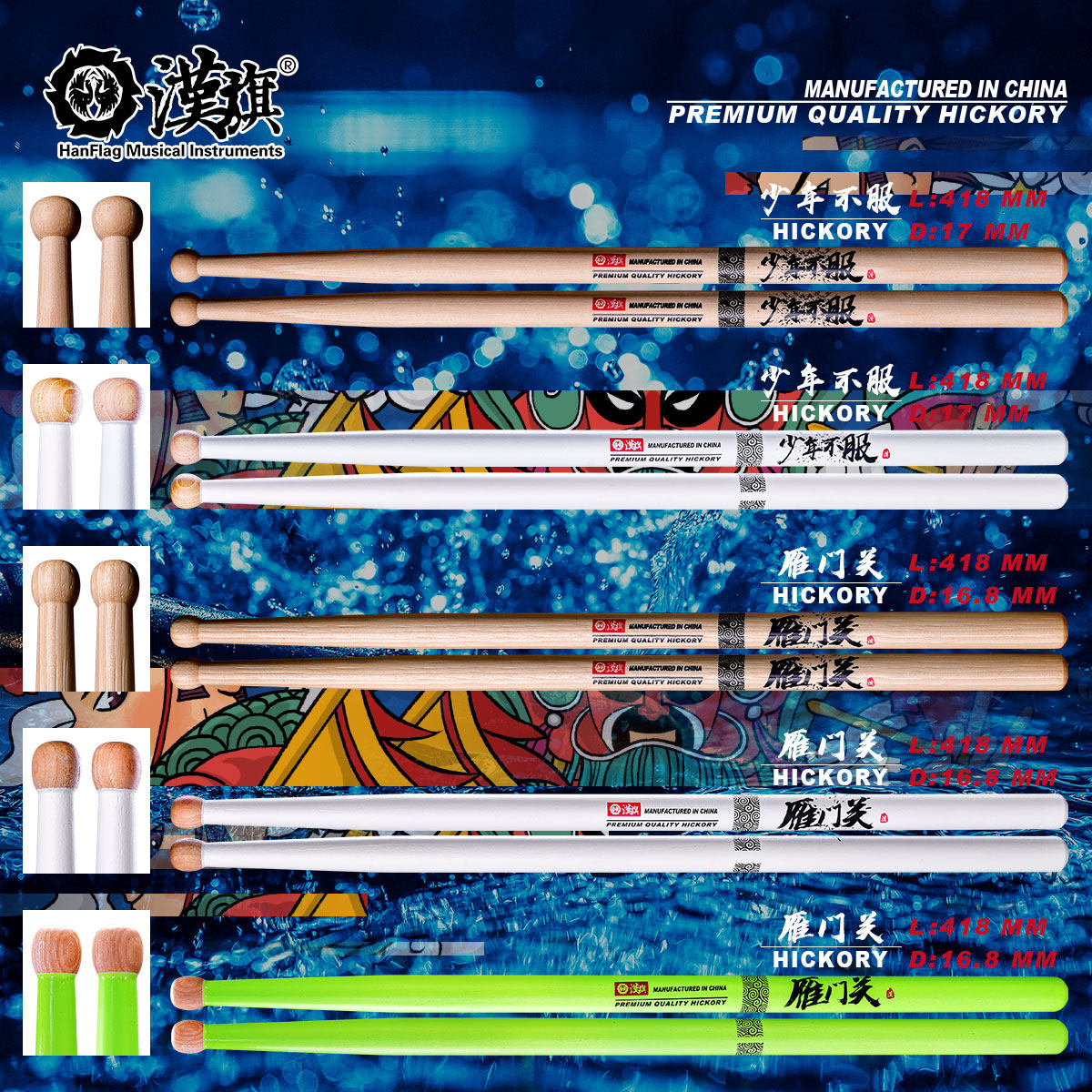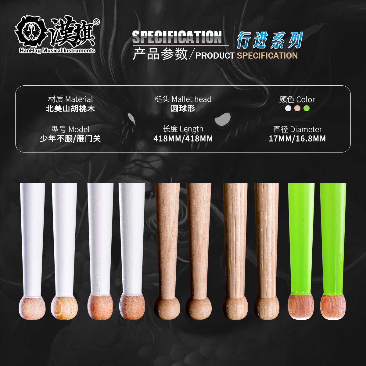 汉旗 Барабанные палочки марширующей армии Молодые непокорные барабанные палочки из орехового дерева Yanmenguan Флагманский магазин Hanqi