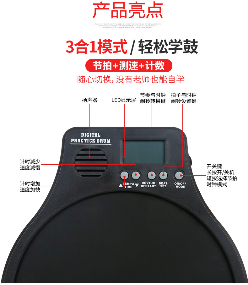 Электронный комплект, ударные инструменты, барабаны для обучения математике, 12 дюймов, подходит для начинающих