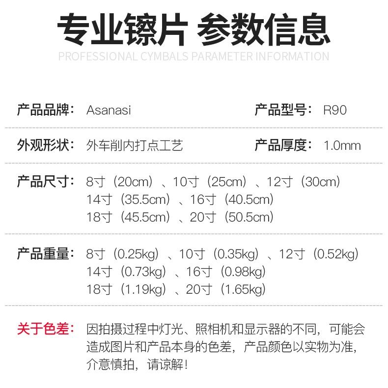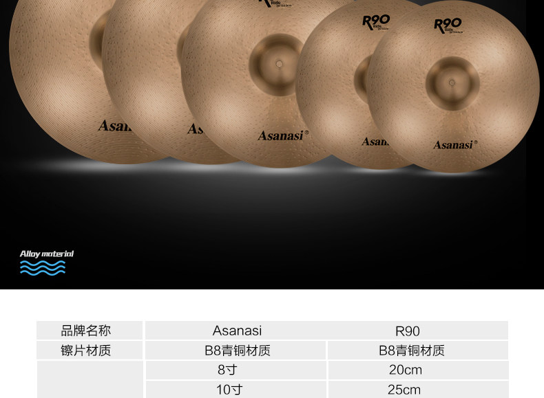 Асанаси латунный нарезанный барабан R90, 14 -дюймовый стереотип 18 -дюймовый сильный звук 镲 20 -INCH Ding Ding 镲 B8