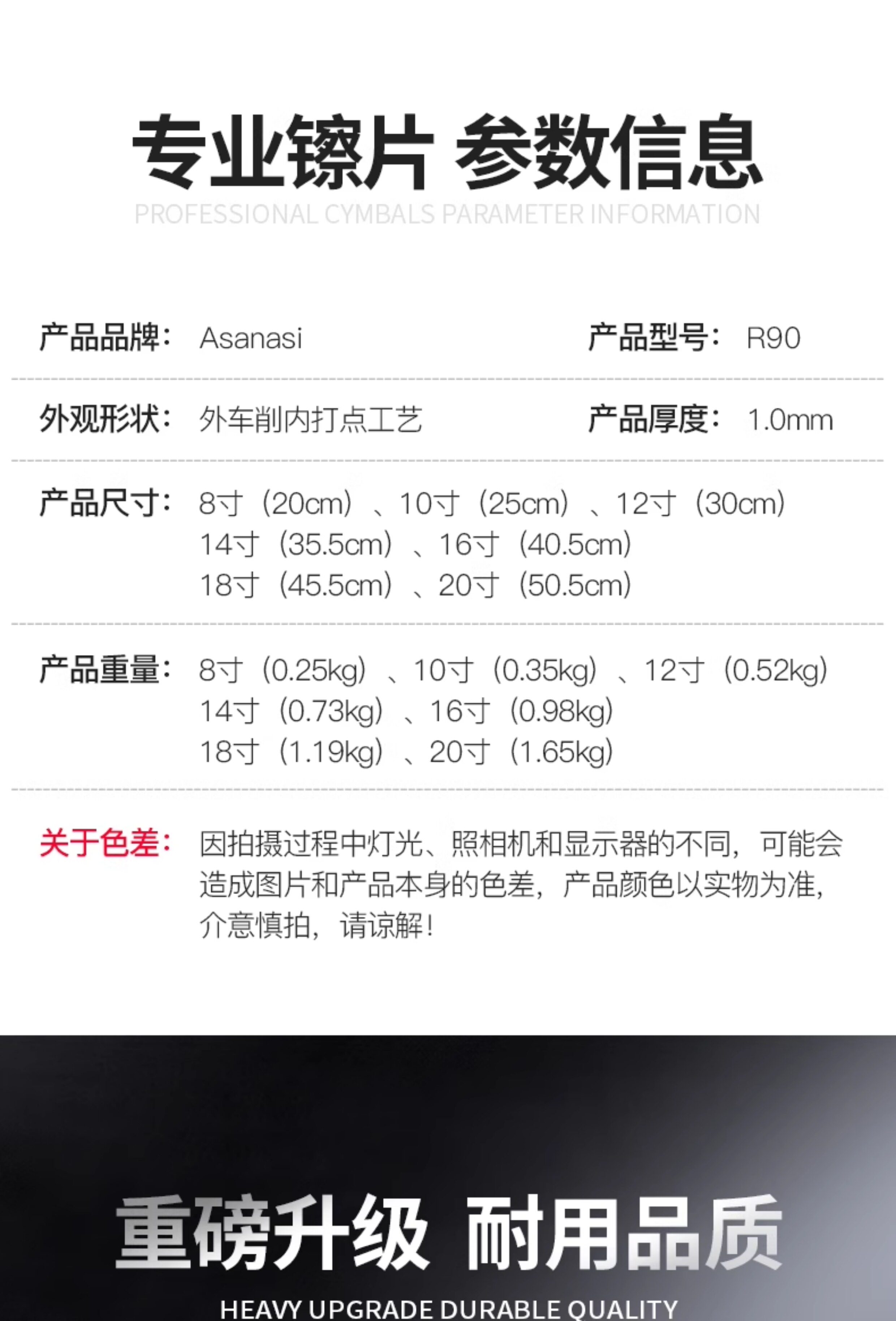 | Цвет: | 14 -inch*2 Уйти вниз, 16 -INCH High Sound 寸, 18 -инд -сильный звук 寸, 20 -INCH NAIN, 3 镲 костюмы (4 штуки), 4 镲 Suite (5 штук) |