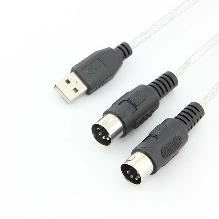 Подключаемая головка: Один конец -общий плагин USB 2.0, а другой -пара из пяти круговых заглушек (MIDI вход/вывод для музыкальных инструментов)