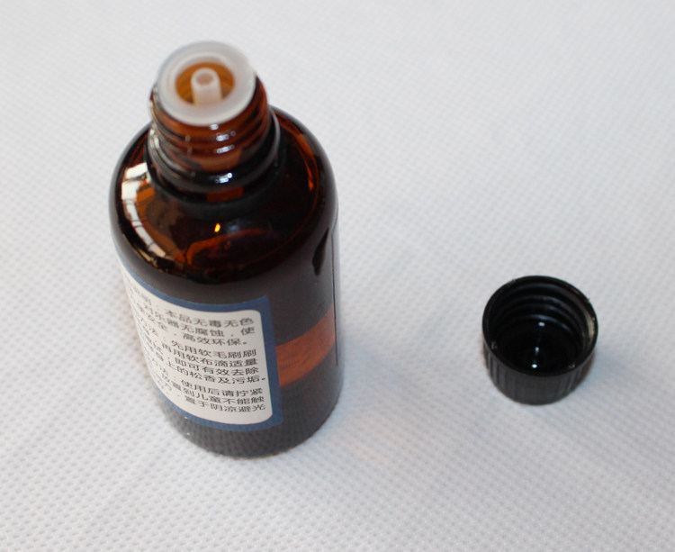 2. Используйте мягкую ткань, чтобы опустить соснувую грязь с мягким количеством этого продукта для очистки.В бутылке есть капельница, пожалуйста, наклоните кузов бутылки 45 сначала°, Крепко держите бутылку ладонями, подождите минутку, вы продолжите капать.Не опустите рот бутылки, но он не может выйти.