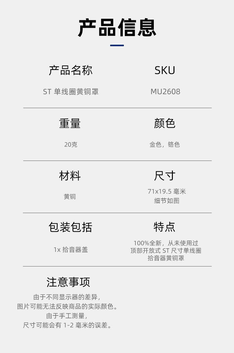Одинарный звукосниматель Brass ST, медная крышка с открытым верхом