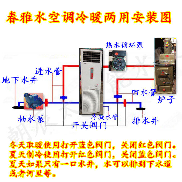 Вода теплый воздух -кондиционированная домохозяйственная температура воды и холодная скважина вентилятор -кондиционирование вентилятор 2 столпа стены, висящие 5 лошадей, окна, окна, оконные трубы прохладные и теплые
