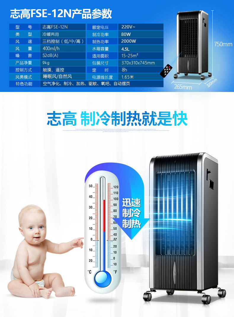 Вентилятор с кондиционером Zhigao Conditioning Cold и плащи. Двухцелевирует маленький домашний электрический вентилятор. Одиночный механизм холодного ветра Горят без воды, горячая и холодная вода, холодная мини -мини
