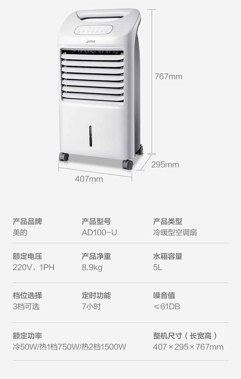 Midea Air -Conditioning Вентилятор теплый и холодный двойной пульт дистанционного управления Небольшой воздушный кондиционирование